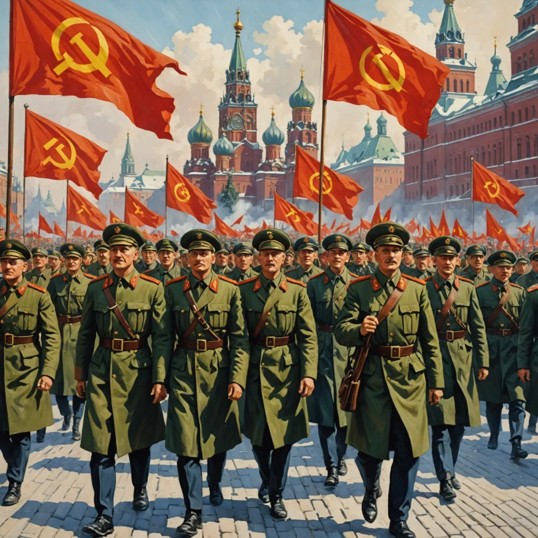 - Подготовьте символические атрибуты — например, красные знамена или значки с советской символикой.